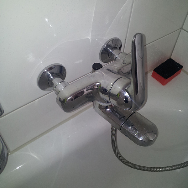 Im Bad ist der beste Einbauplatz direkt unter dem Waschtisch. In der Dusche kann er an das untere Ende des Brausenschlauchs gebunden werden. Eine andere Möglichkeit ist auch, ihn direkt an die Armatur der Badewanne zu binden. (Beispielbild)